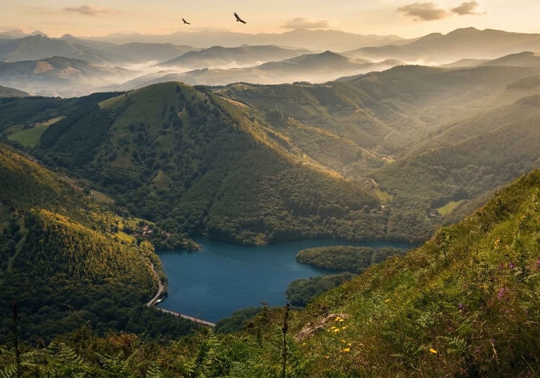 A muy poca distancia de nuestro agroturismo se alza la imponente silueta de Aiako Harria (Peñas de Aya), el único macizo granítico de Euskadi y una de las joyas naturales más sorprendentes de nuestro entorno. Con su inconfundible perfil de tres picos, este Parque Natural invita a nuestros huéspedes a sumergirse en una tierra de leyenda, donde podrán explorar las antiguas minas romanas de Arditurri, recorrer senderos entre bosques milenarios o simplemente dejarse cautivar por unas vistas infinitas que funden el verde de los Pirineos con el azul del Cantábrico y la costa francesa. Es el escenario perfecto para quienes buscan la calma de la montaña y la energía de un paisaje prehistórico, con la comodidad de saber que el descanso y la hospitalidad de nuestra casa les esperan justo al bajar de la cumbre.