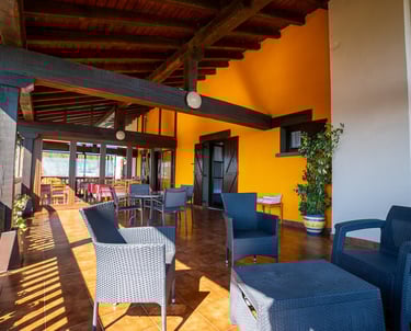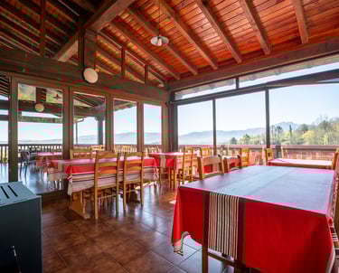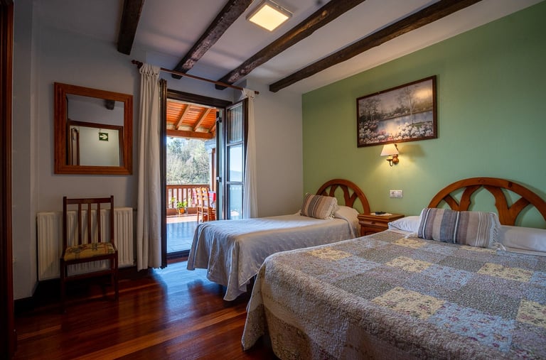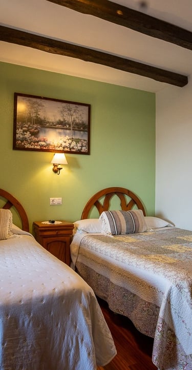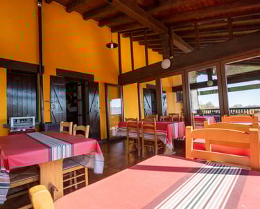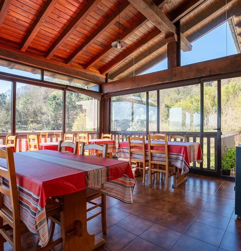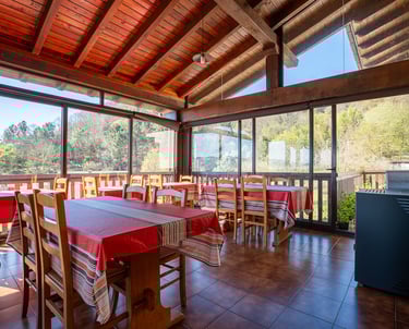 Comienza el día en nuestro comedor acristalado, donde la frontera entre el interior y la naturaleza desaparece. Gracias a sus grandes ventanales, cada desayuno se disfruta con la luz de la mañana y unas vistas fantásticas al entorno verde que nos rodea. Un refugio cálido y acogedor diseñado para saborear la tranquilidad más absoluta mientras el paisaje se cuela en tu mesa.