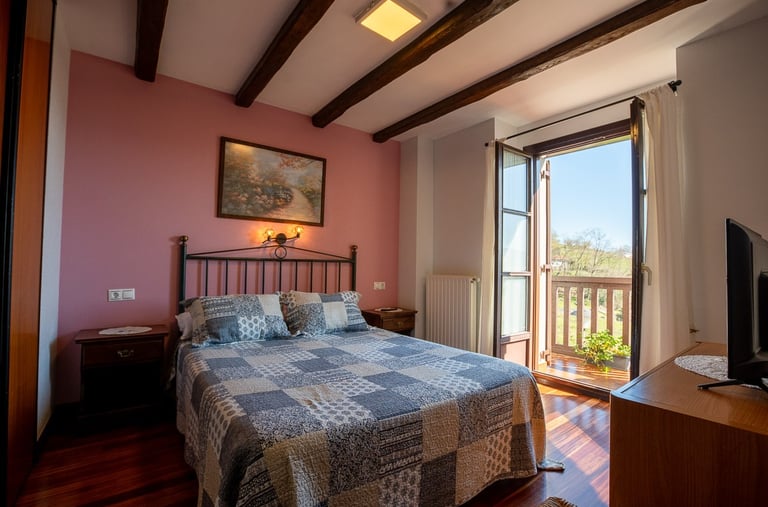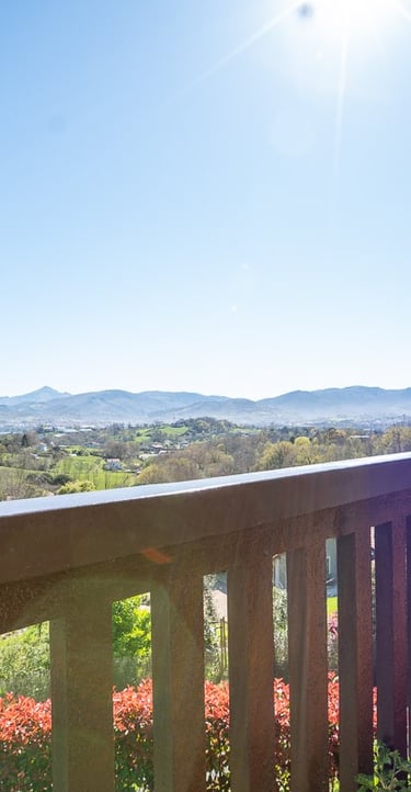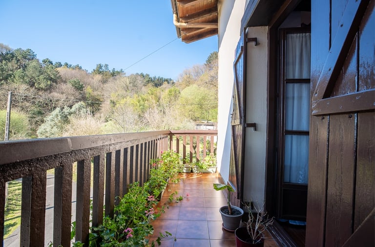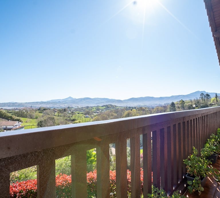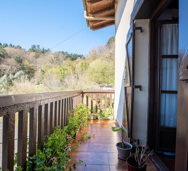 Déjate cautivar por nuestra inmensa terraza, un mirador privilegiado que abraza la Bahía del Bidasoa. Es el rincón perfecto para detener el tiempo en cualquier época del año, donde la majestuosidad de Larun y el verde de nuestras montañas se funden con el azul del mar. Un espacio acogedor diseñado para disfrutar de la paz de este entorno rural con unas vistas que, sencillamente, no se olvidan.